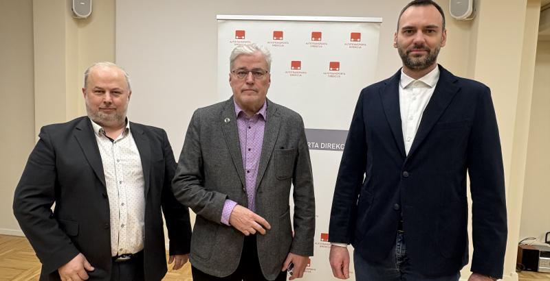 Foto (pa labi): Tukuma auto valdes priekšsēdētājs Sergei Vahnitski, Tukuma auto valdes loceklis Guntars Losevičs un ATD valdes priekšsēdētājs Jānis Lapiņš.
