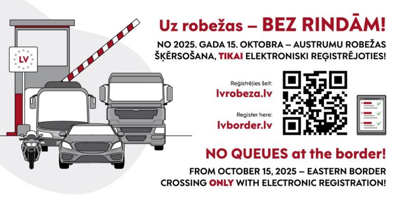 ATD atgādina, ka, lai uzlabotu robežšķērsošanas drošību un novērstu auto transporta rindas uz Latvijas austrumu robežas, no 2025. gada 15. oktobra šķērsot Latvijas–Krievijas un Latvijas–Baltkrievijas robežu Grebņevā, Terehovā un Pāterniekos var, tikai iepriekš reģistrējoties Elektroniskās rindas rezervācijas sistēmā (ERRS). Līdz ar jaunās rindas rezervācijas sistēmas ieviešanu Latvijā šāda austrumu robežas šķērsošanas kārtība darbojas visās trīs Baltijas valstīs. Reģistrēt transportlīdzekli elektroniskajā rindā robežas šķērsošanai iespējams interneta vietnēs www.lvborder.lv  un www.lvrobeza.lv.